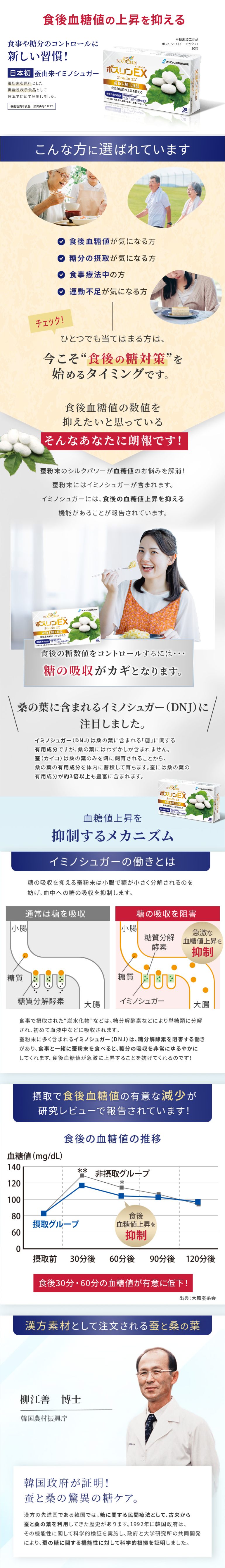 보스린 EX는 누에 유래 천연 성분, 실크의 힘으로 일상적인 건강과 혈당 관리를 지원하는 서플리먼트입니다.